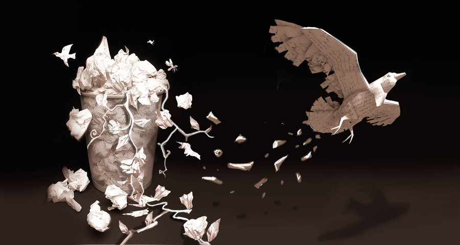 washing over our world, the paper bird and I.